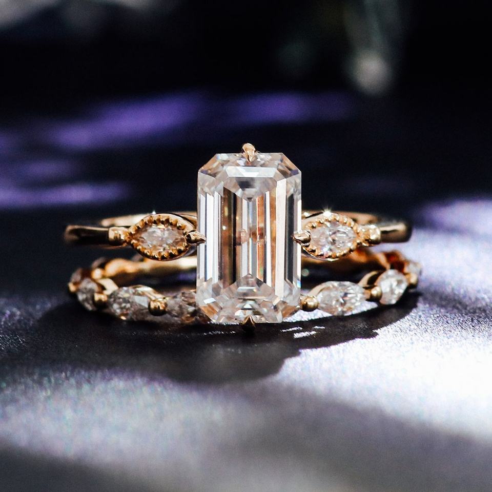แหวนเพชรโมอิสซาไนต์ทรงแอสเชอร์ คัต สี DEF ความสะอาด VVS ทองคำแท้ 10K 14K 18K สีเหลืองทอง งานฝีมือประณีต สำหรับผู้หญิง แหวนคู่ แหวนหมั้น