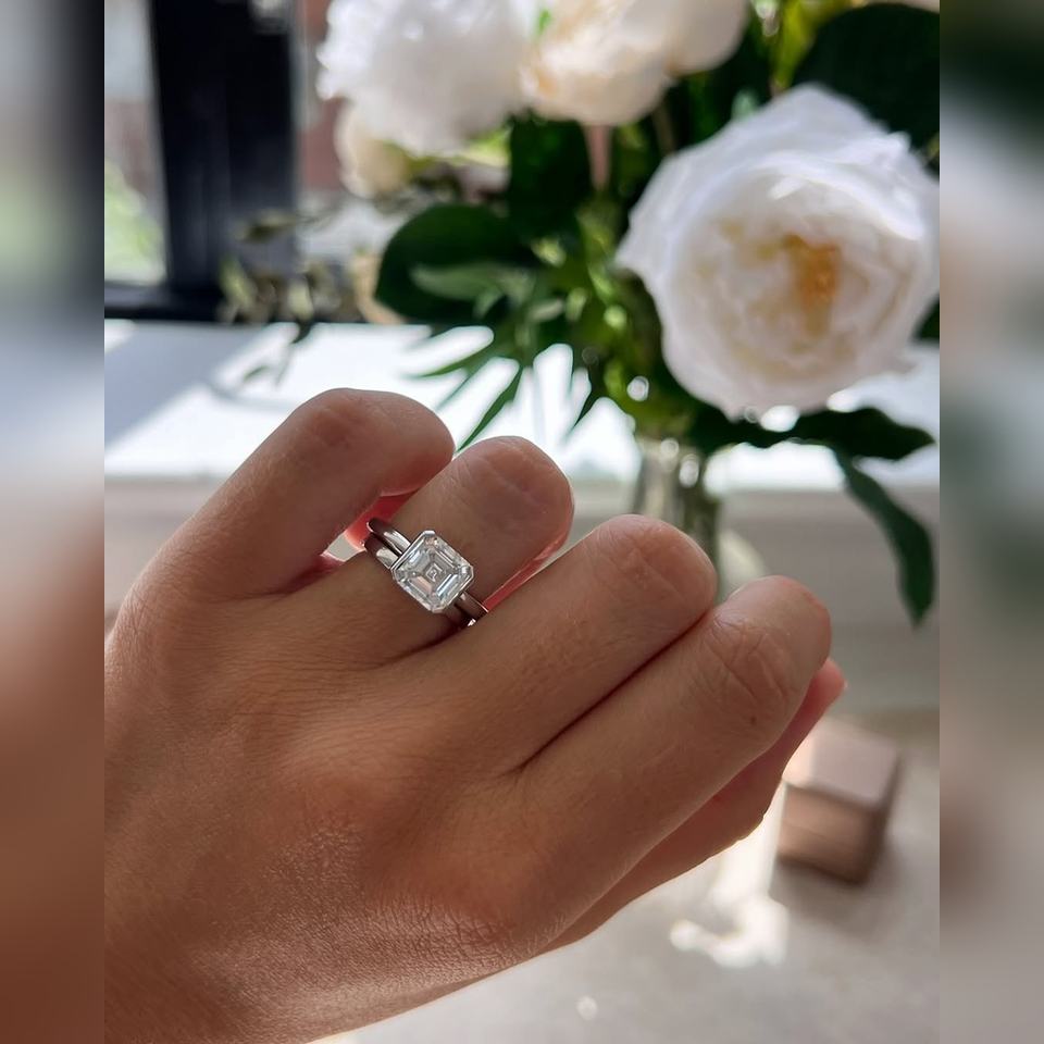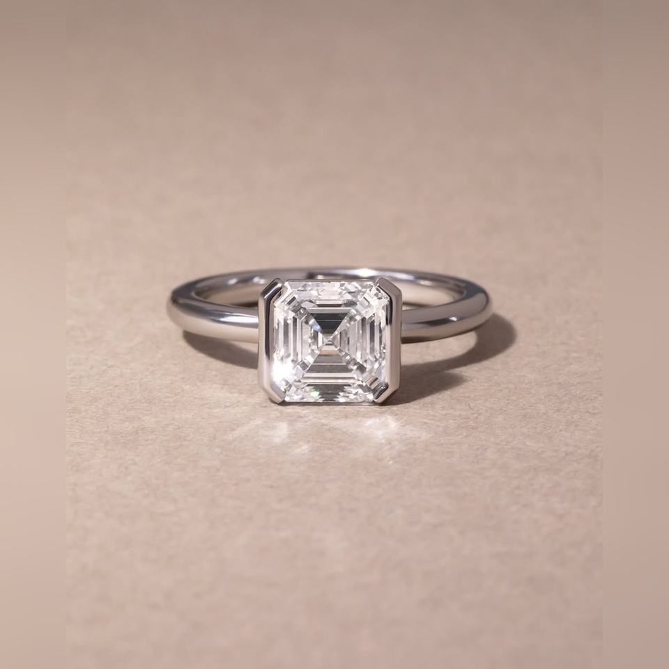 แหวนเพชรทรง Asscher ตัวเรือนเงินสเตอร์ลิง ชุบทอง ขอบเพชรแบบ Bezel สำหรับงานหมั้นและงานแต่งงาน