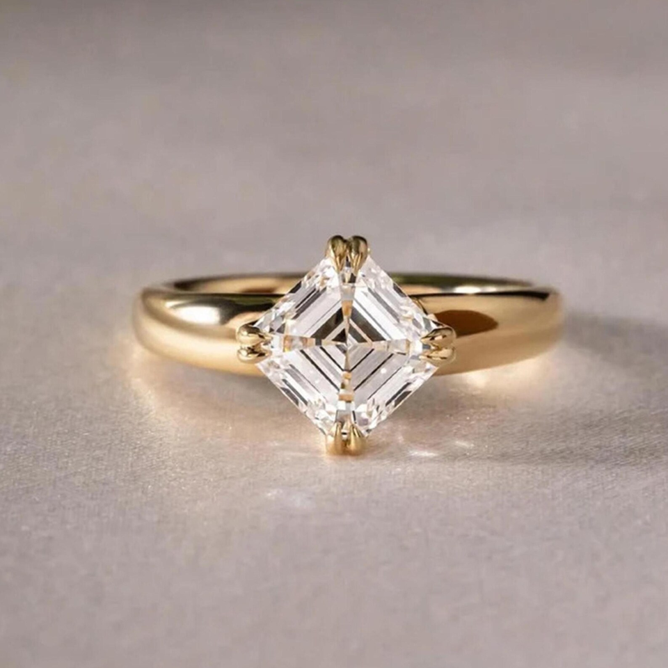 แหวนเพชรทรงแอสเชอร์คัท ทอง 14K ดีไซน์หรูหรา