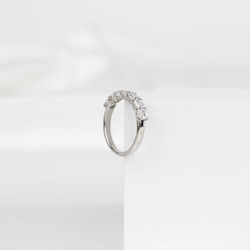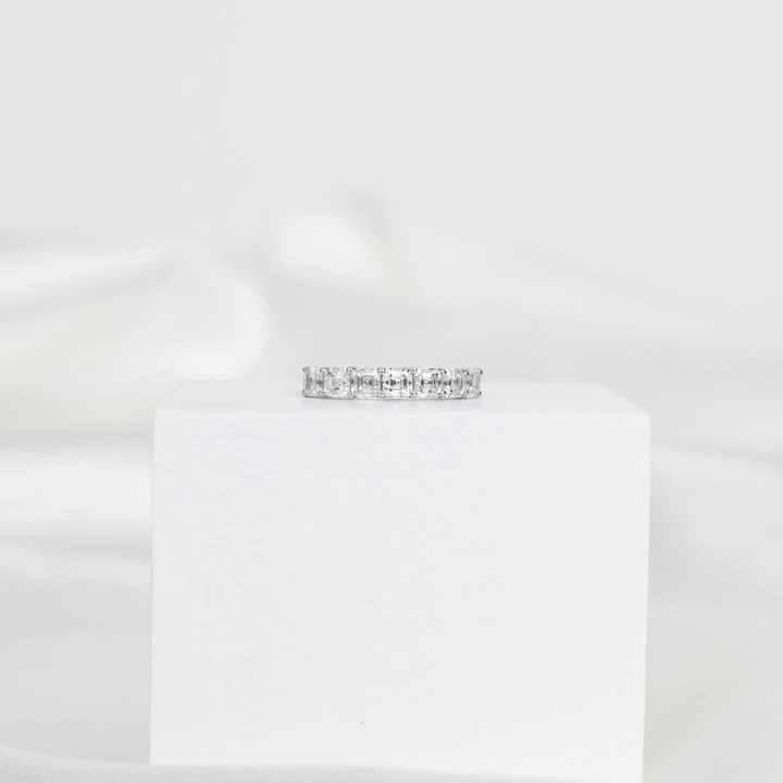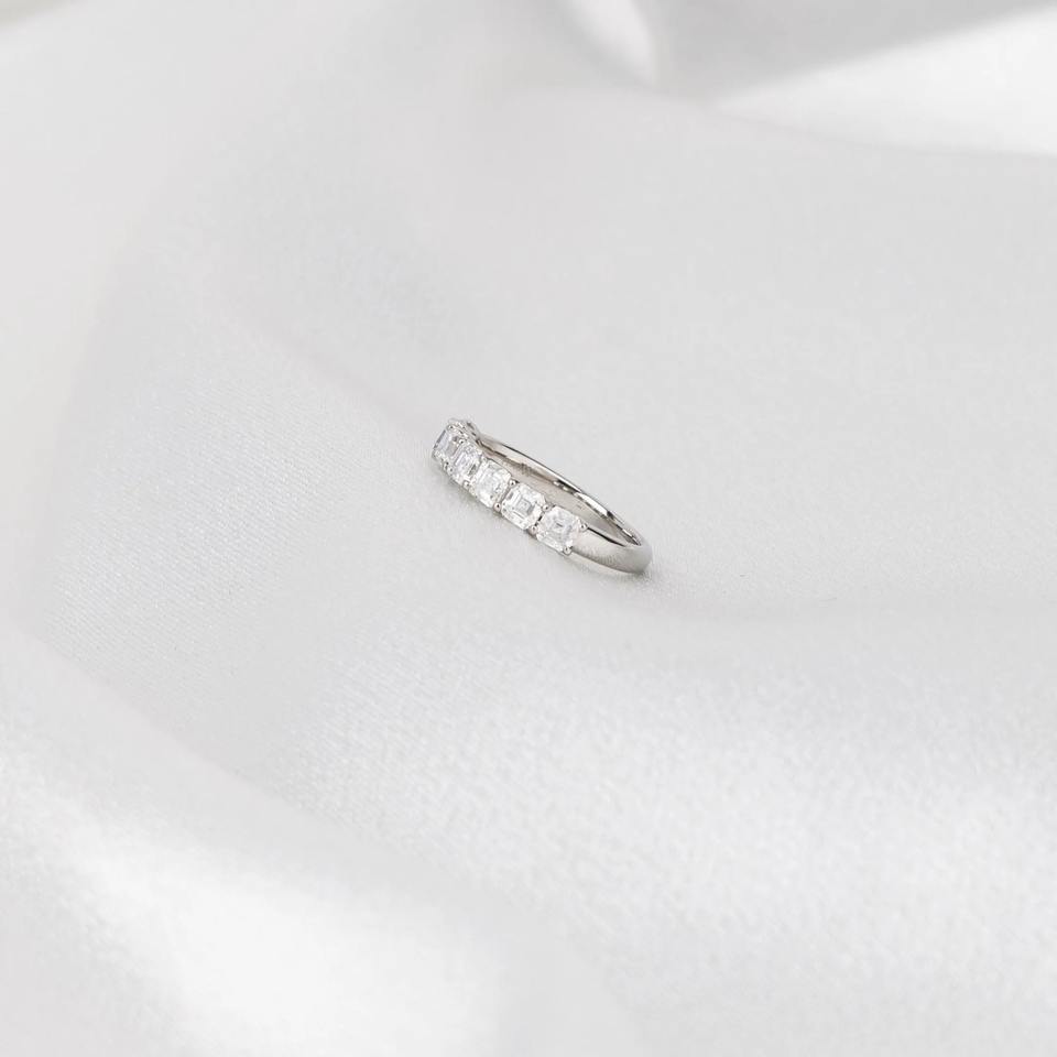 แหวนแต่งงานเพชรทรง Asscher แบบปลูกในห้องปฏิบัติการ ครึ่งวงนิรันดร์ สามารถซ้อนกับแหวนอื่นได้ เหมาะสำหรับเป็นของขวัญหมั้นสำหรับผู้หญิง เครื่องประดับชั้นดี