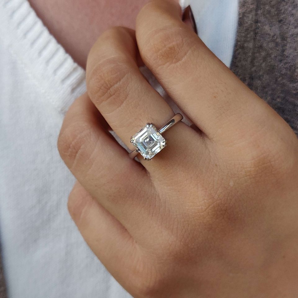 เพชรสำหรับปลูกในห้องปฏิบัติการ Asscher ทอง10K ได้รับการรับรองสำหรับผู้หญิง IGI สำหรับงานแต่งงานงานหมั้นและงานเลี้ยง