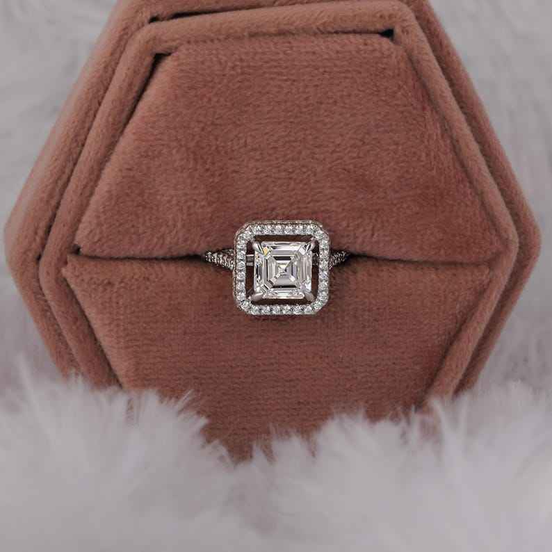 แหวนหมั้นเพชรสี่เหลี่ยมสำหรับผู้หญิงอัสเชอร์ห้องปฏิบัติการสำหรับผู้หญิง