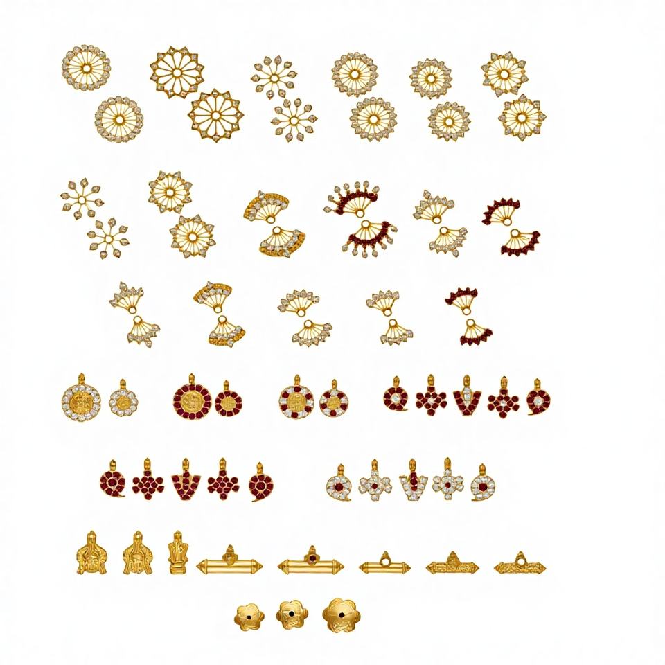 Assorted 22 K Gold Plated Brass Jewelry Components: Ethnic South Indian Pendants Flower Charms, and Stone-Studded Connectors