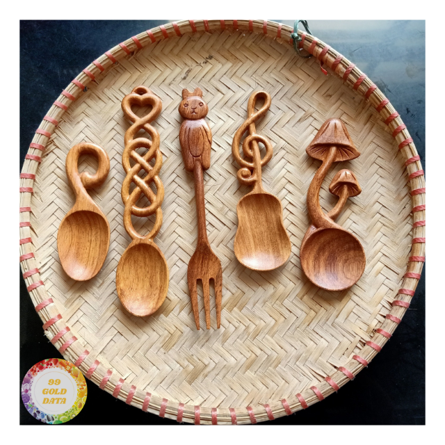 ช้อนไม้หลากหลายดีไซน์ แกะสลักด้วยมือ ช้อนไม้ทำมือ คอลเลคชั่นช้อนไม้ ของขวัญทำมือ อุปกรณ์ครัว - CARYLN