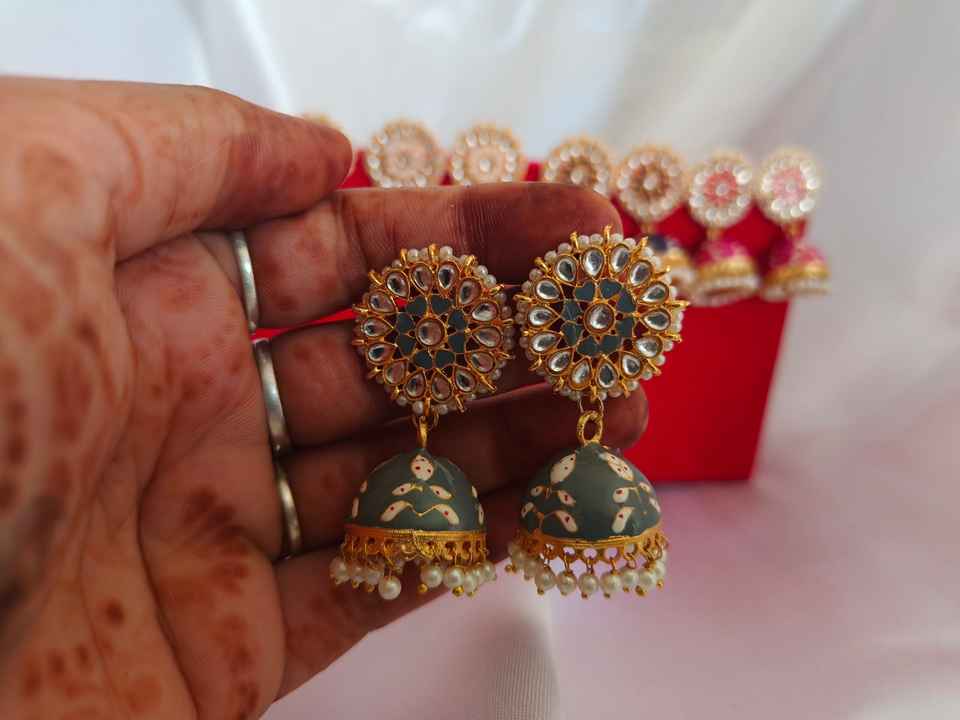 คละมือทาสีMeenakariทํางานต่างหูผู้หญิงยอดนิยมพรรคสวมใส่ผู้หญิงJhumkaเครื่องประดับ