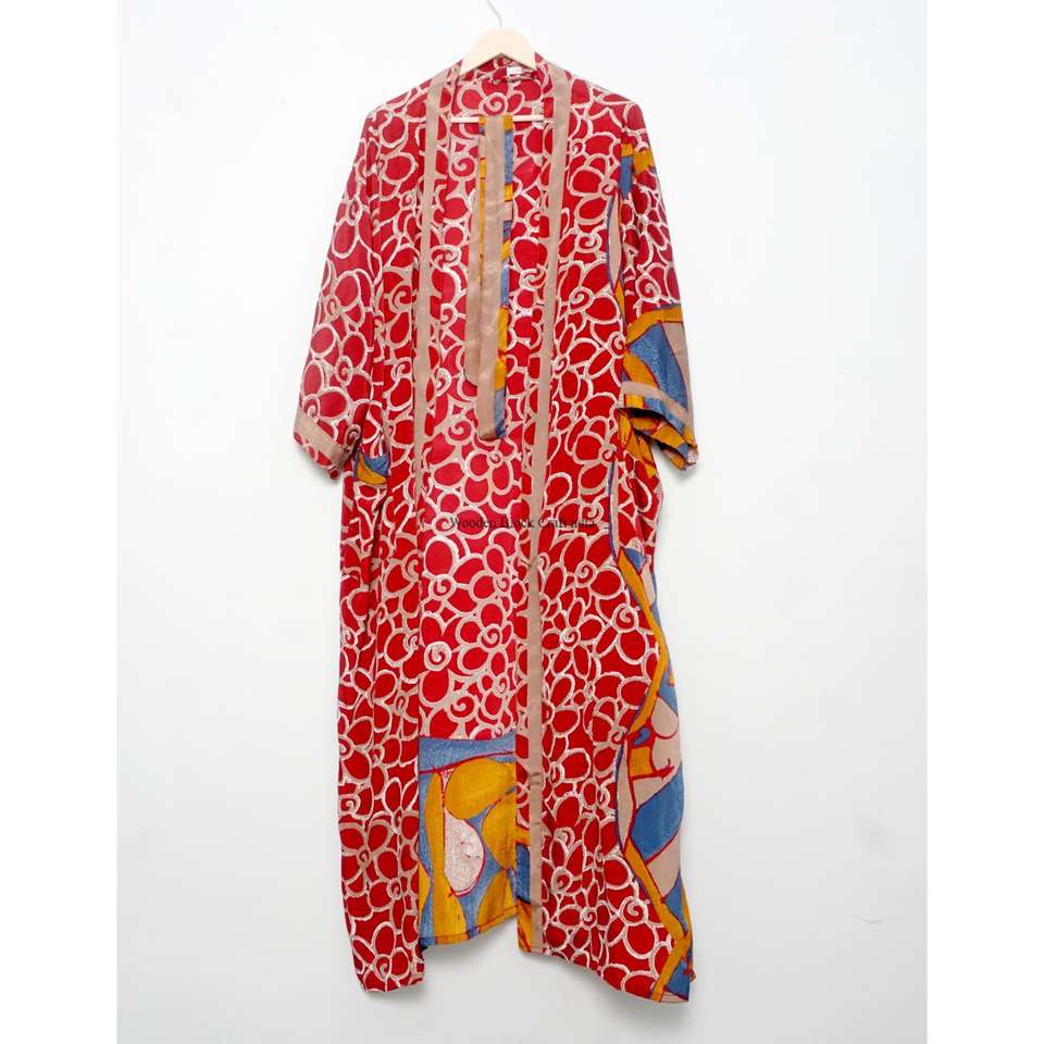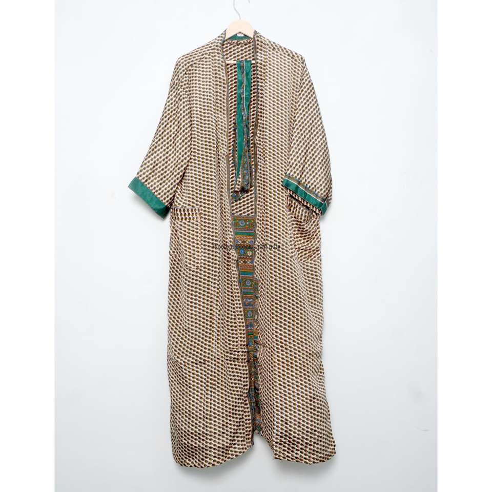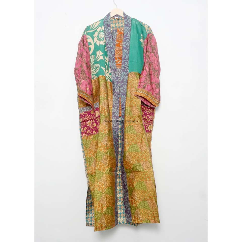 ชุดคลุมอาบน้ำผ้าไหมอินเดียหลากสีสไตล์กิโมโนแบบคันธา ขายส่ง ชุดนอนแฮนด์เมดลายปะติดปะต่อ ชุดเดรสยาว