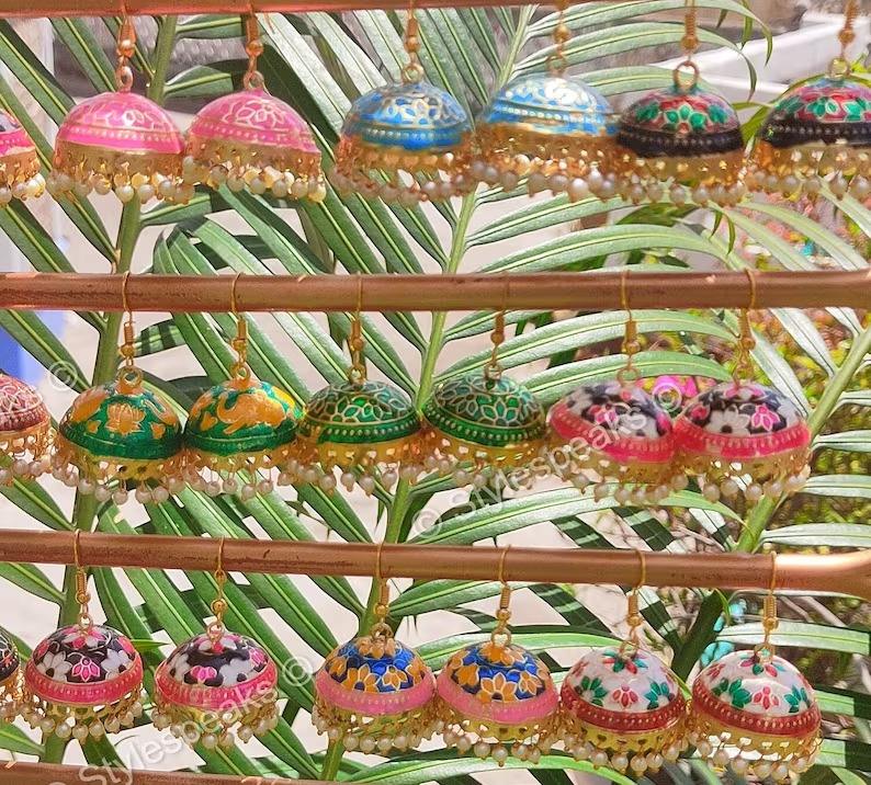 ต่างหู meenakari หลากหลายแบบทำด้วยมือเครื่องประดับอินเดียสำหรับงานแต่งงานของขวัญสำหรับเพื่อนเจ้าสาวของขวัญสำหรับงานพิธีมอบ