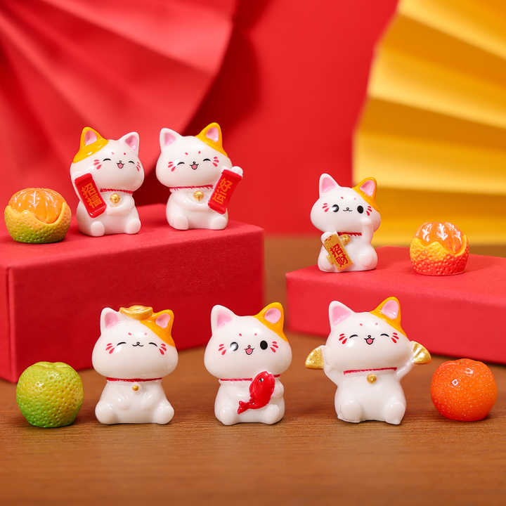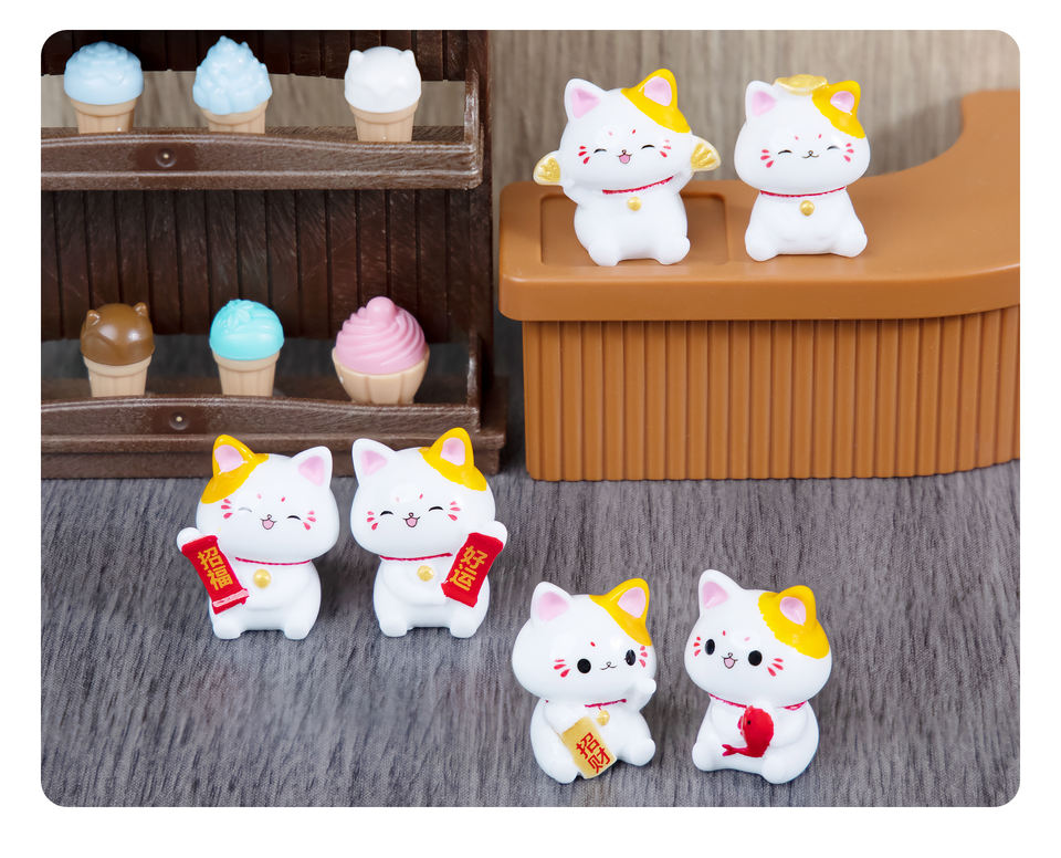 ชุดแมวกวักจิ๋วหลากหลายแบบ | รูปปั้นเรซิ่นแมวกวัก 6 แบบ สำหรับตกแต่งสวนเซนและของขวัญธุรกิจ จำนวนมาก