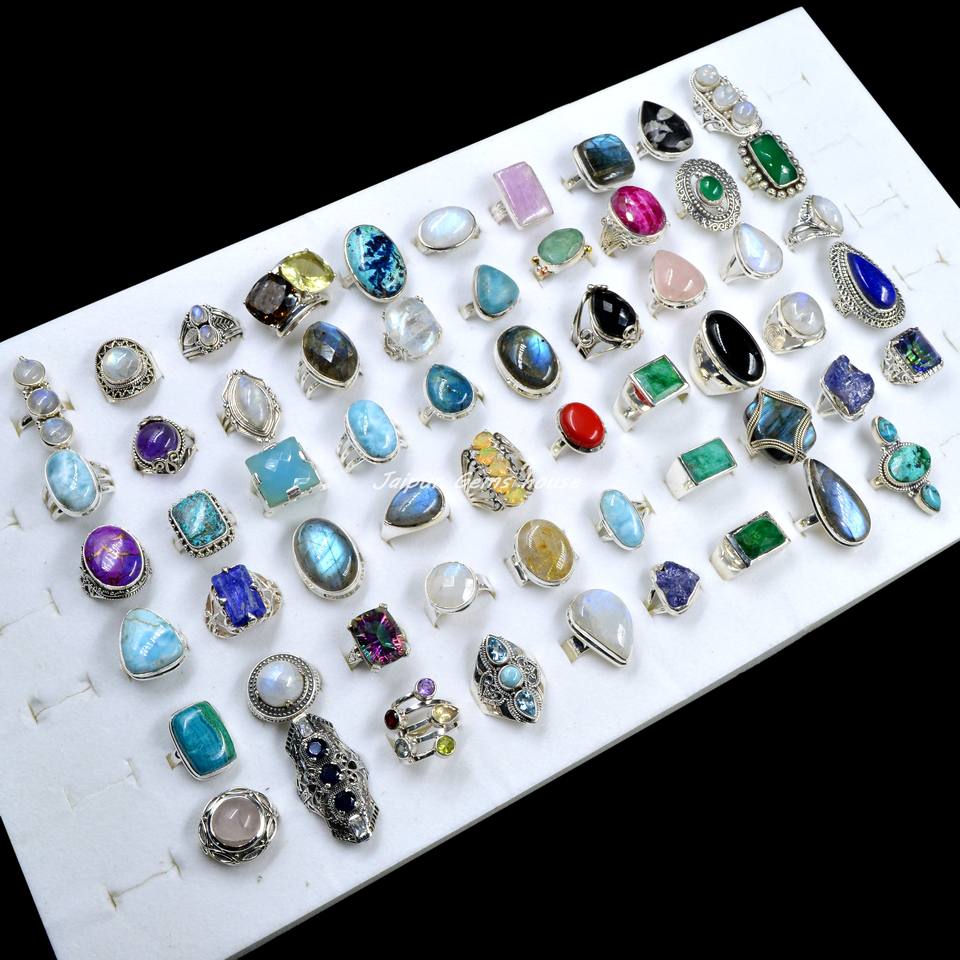 แหวนพลอยแท้คละแบบ ชุดแหวนเงินแท้ 925 แหวนขายส่ง ชุดแหวนเครื่องประดับชายหาด แหวนดีไซน์วินเทจสำหรับผู้หญิง