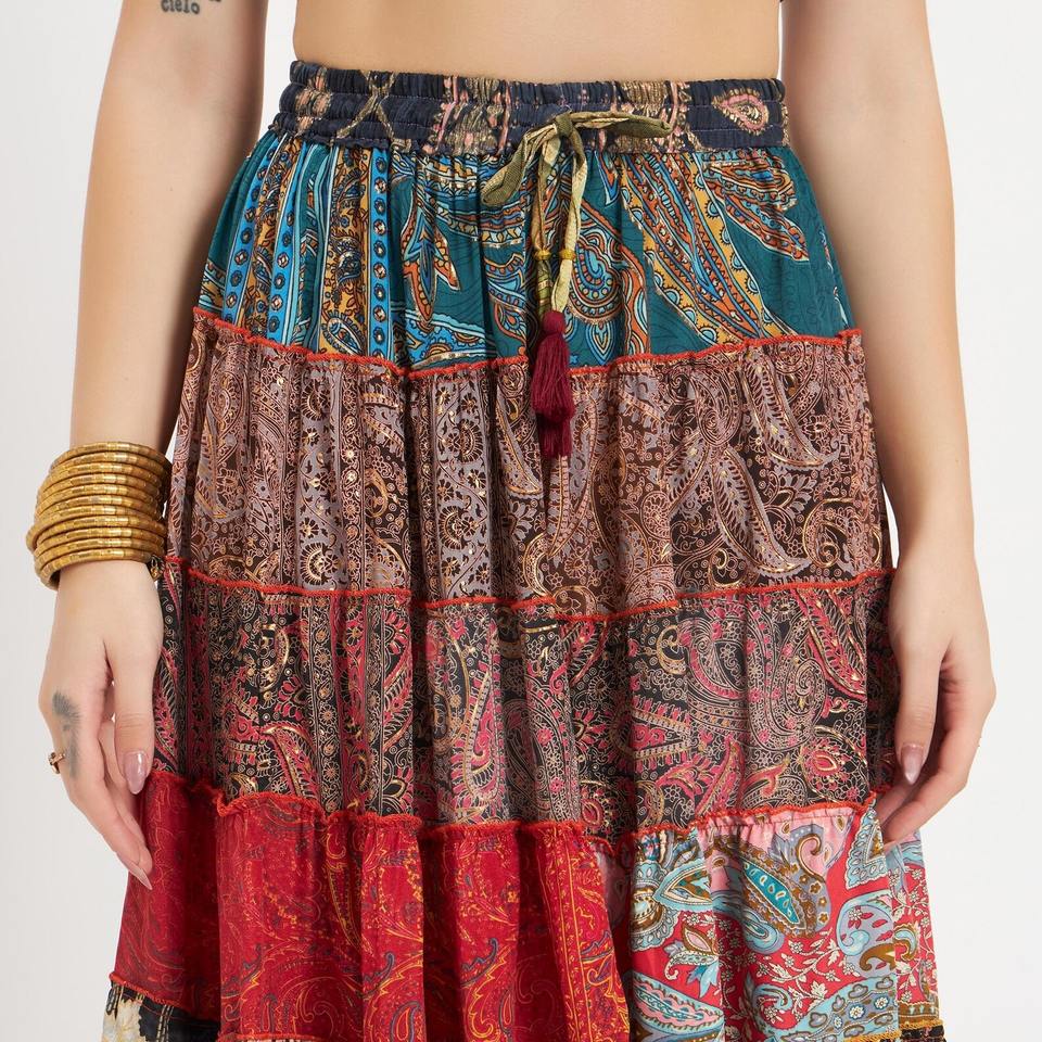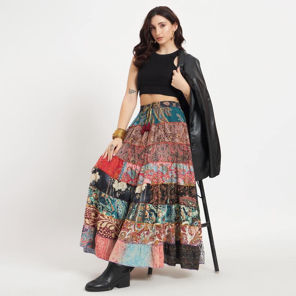 กระโปรงผ้าไหมปะต่อหลายชั้นแบบใหม่ ทำมือ สไตล์โบฮีเมียน ระบายอากาศได้ดี กระโปรงยาวทรงหลายชั้น