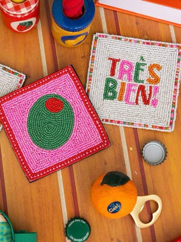 แผ่นรองแก้วปักลายลูกปัด