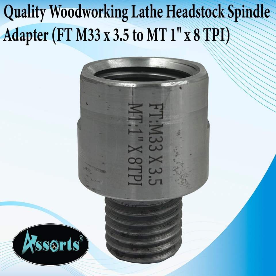 อะแดปเตอร์แกนหมุนเครื่องกลึงแบบต่างๆ วัสดุเหล็กอัลลอยด์ พร้อมลูกปืน M33 x 3.5 ถึง Mt 1 นิ้ว x 8 Tpi สำหรับเครื่องจักรงานไม้