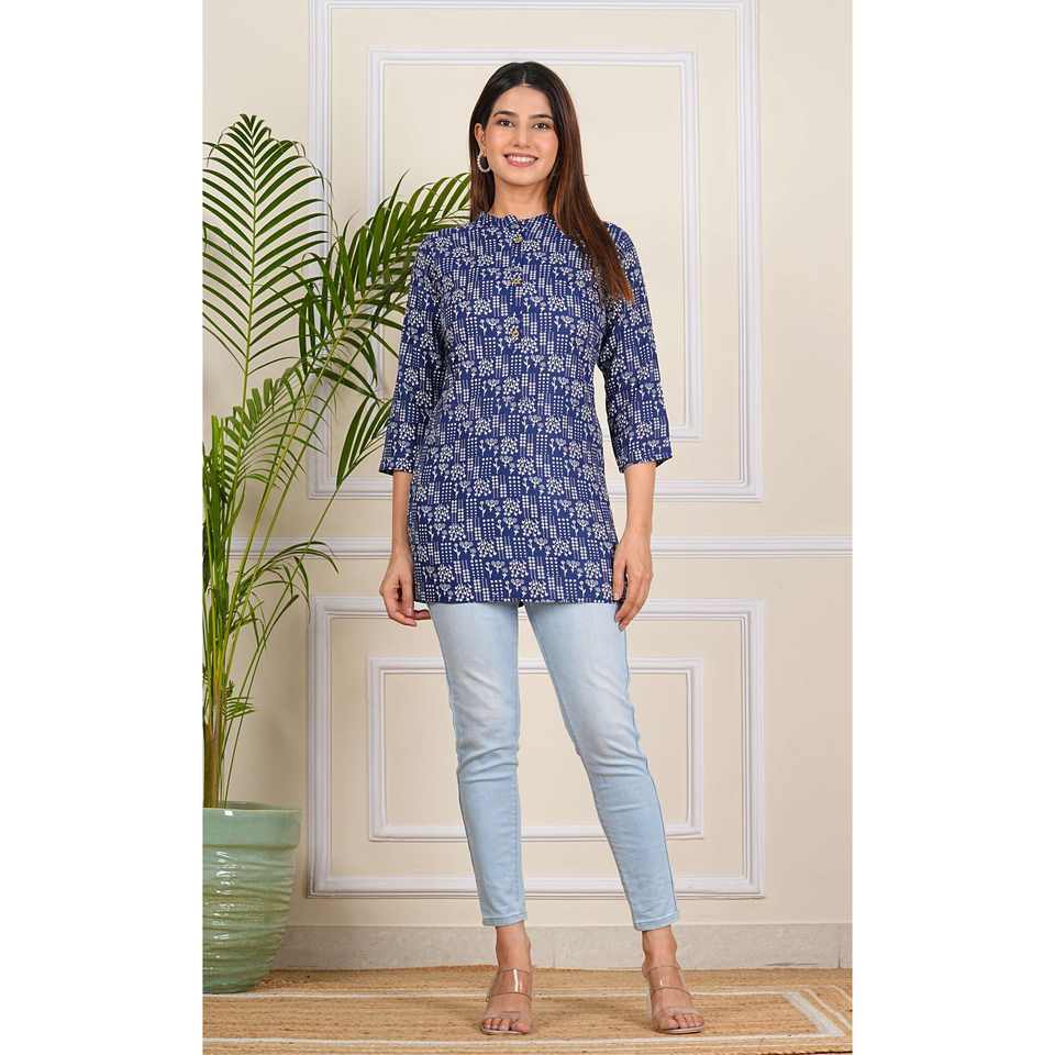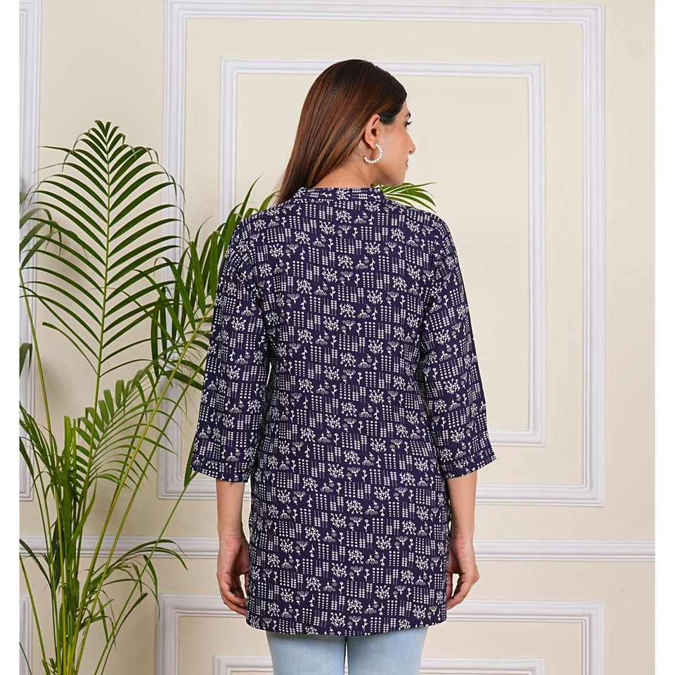 เสื้อคุร์ติสั้นสำหรับผู้หญิงที่มีน้ำหนักเบาใส่ได้ทุกวันชุดแฟชั่นสไตล์ชนเผ่าพิมพ์ลายทันสมัย