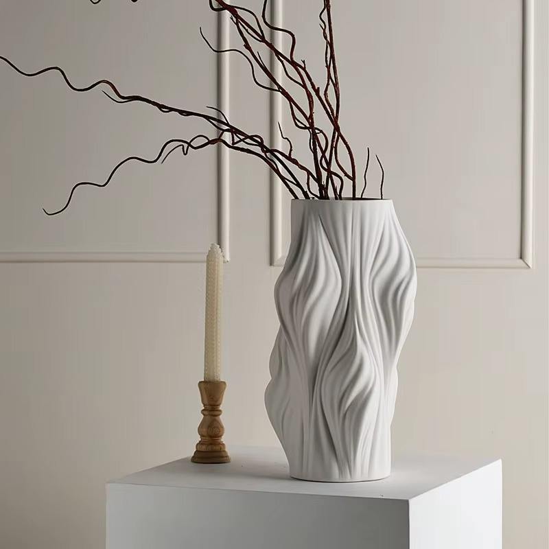แจกันดอกไม้พอร์ซเลนสีขาวคุณภาพสูงระดับหรูหรา ผลิตด้วยมือ เป็นมิตรกับสิ่งแวดล้อม ทนทาน ช่วยเพิ่มบรรยากาศในสำนักงาน