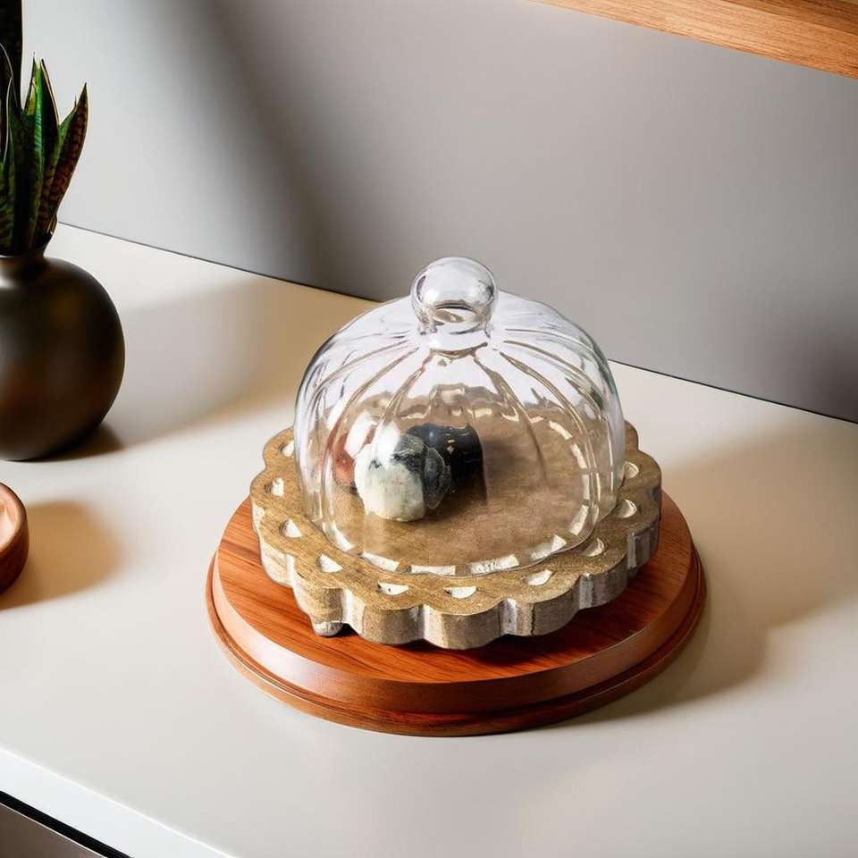 เสื้อคลุมแก้วพร้อมฐานไม้สำหรับงานปาร์ตี้