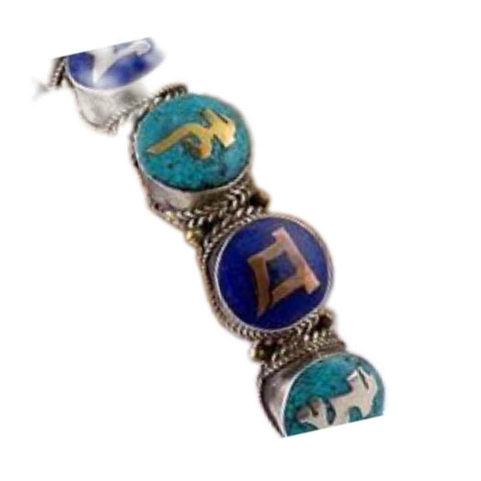 กำไลข้อมือประดับหินฝังลายพร้อมมนต์:ทองแดง ทองเหลือง และโลหะผสมสีขาว
