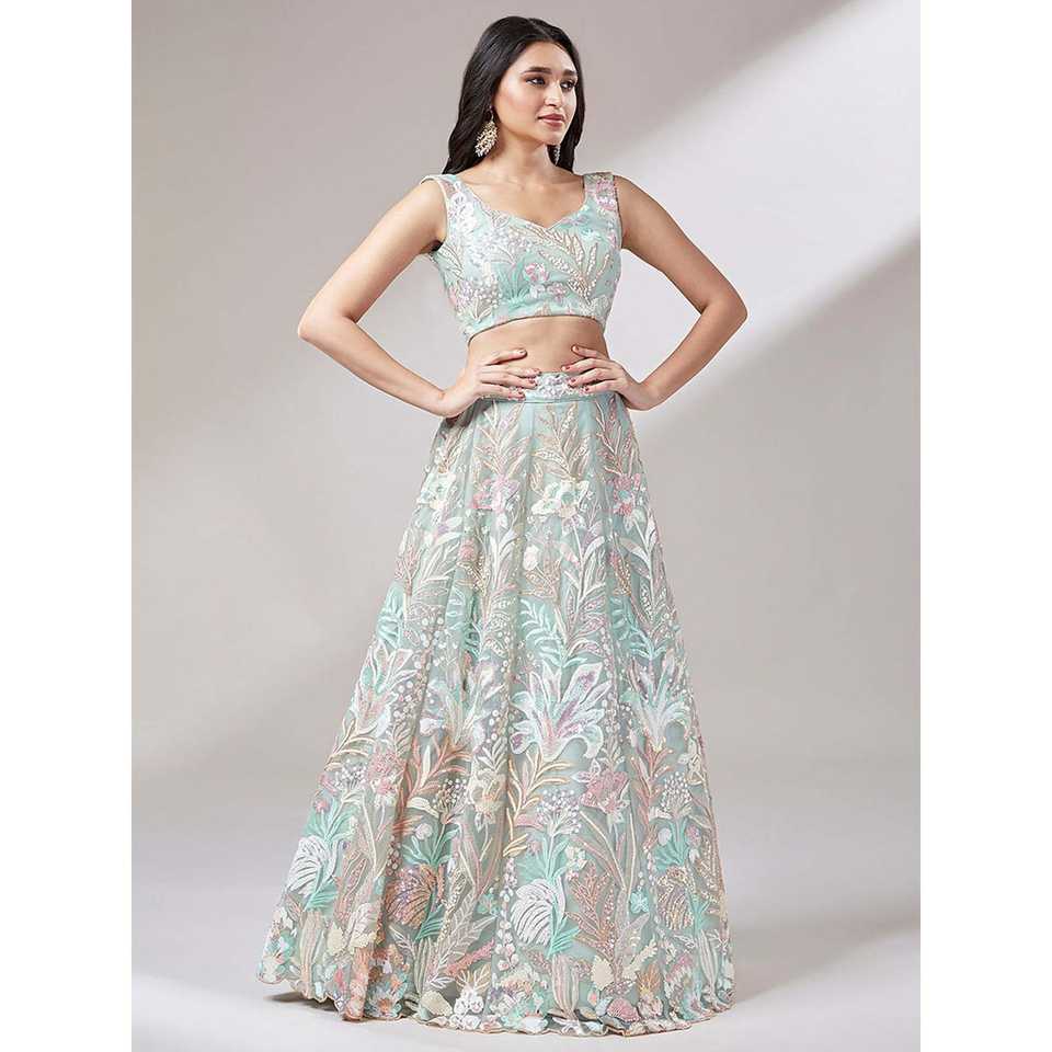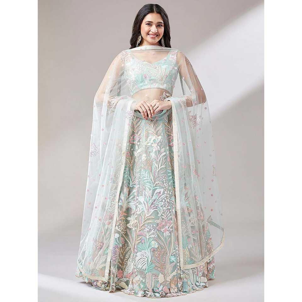 Astonishing Pista Green Sequins Net Wedding Apparel Lehenga Choli