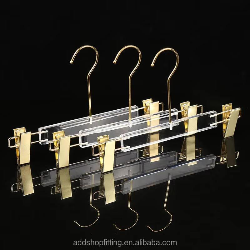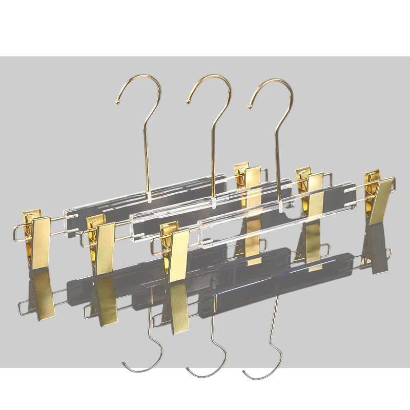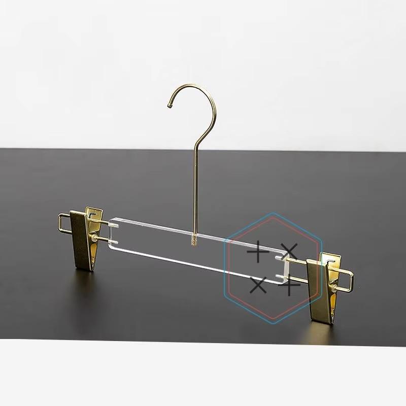 Product name:32 cm Gold Clips Transparent Acrylic Hanger For Pants