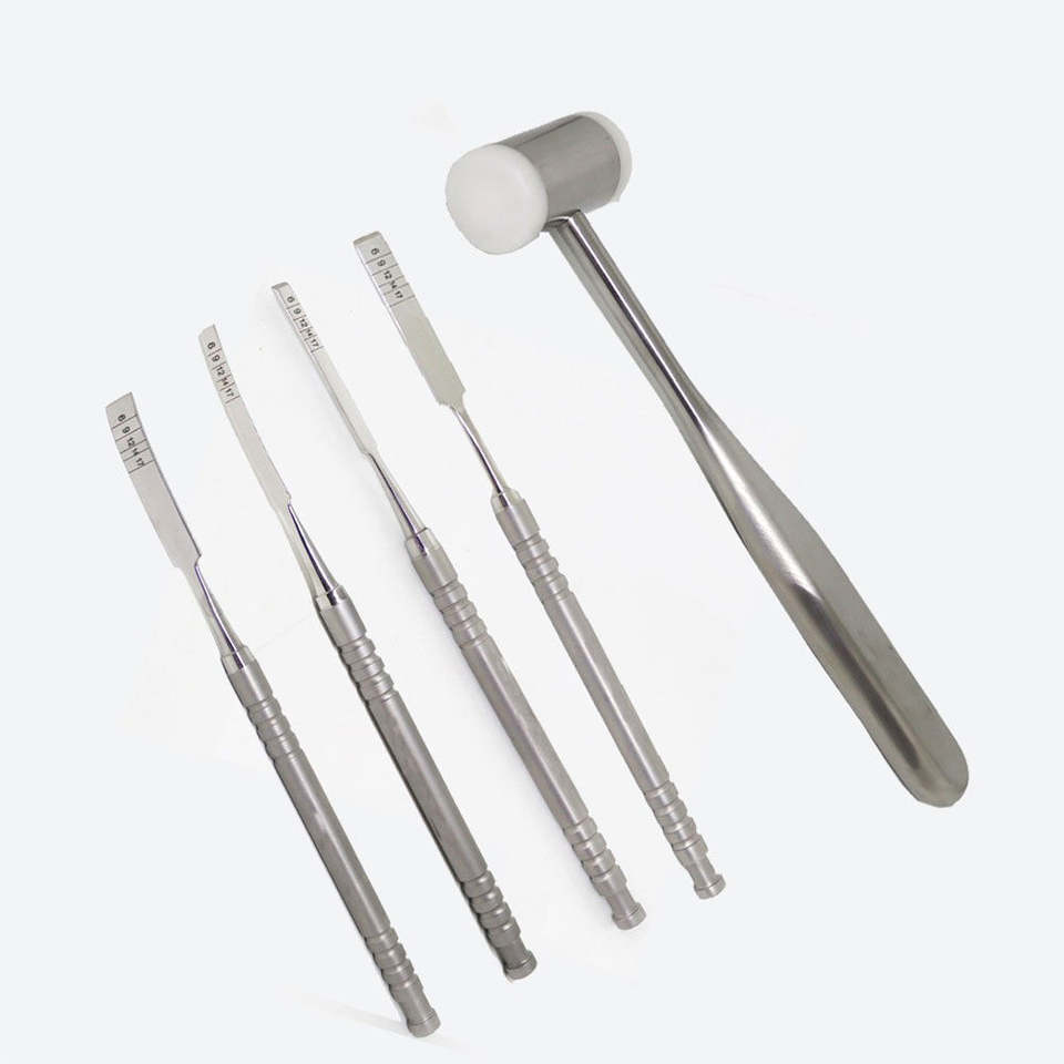 ชุดสิ่วตัดกระดูก Astrin Surgical Osteotome 4 ชิ้น พร้อมค้อนตอกกระดูก สแตนเลสสตีล สำหรับงานทันตกรรม ขยายร่องฟัน ถอนฟัน รุ่น MOL