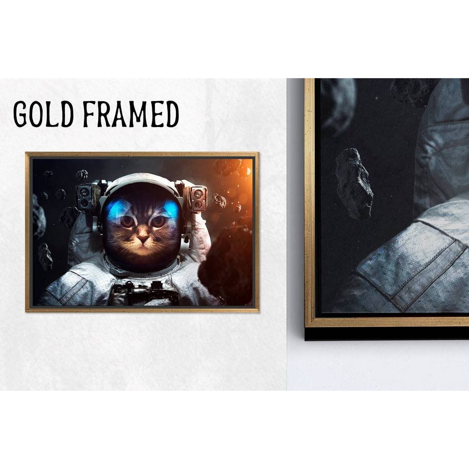 ภาพพิมพ์บนผ้าใบลายแมวนักบินอวกาศ: งานศิลปะสัตว์แสนน่ารักสำหรับตกแต่งบ้าน,1P Goldframedcanvas