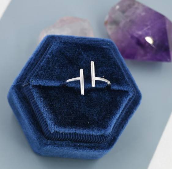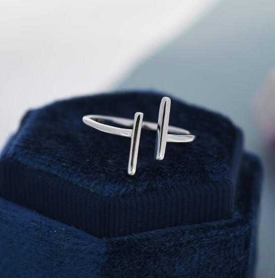 แหวนเงินแท้ทรงแท่งคู่ขนานแบบปรับได้ ดีไซน์มินิมอล ประดับเพชร CZ แหวนซ้อนกันได้