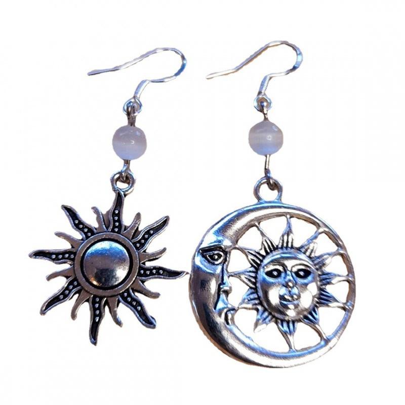 ต่างหูโกเมนหน้าดอกทานตะวันทำจากโลหะผสมสังกะสีดีไซน์แบบอสมมาตร