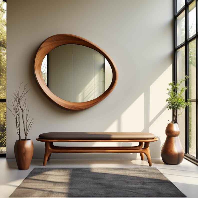 กระจกติดผนังไม้วอลนัทไม่สมมาตรทำด้วยมือเป็นมิตรต่อสิ่งแวดล้อมดีไซน์อาร์ตเดคโค