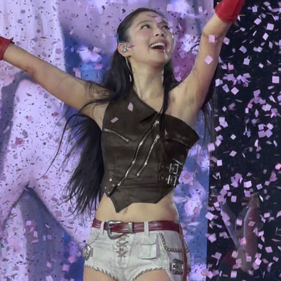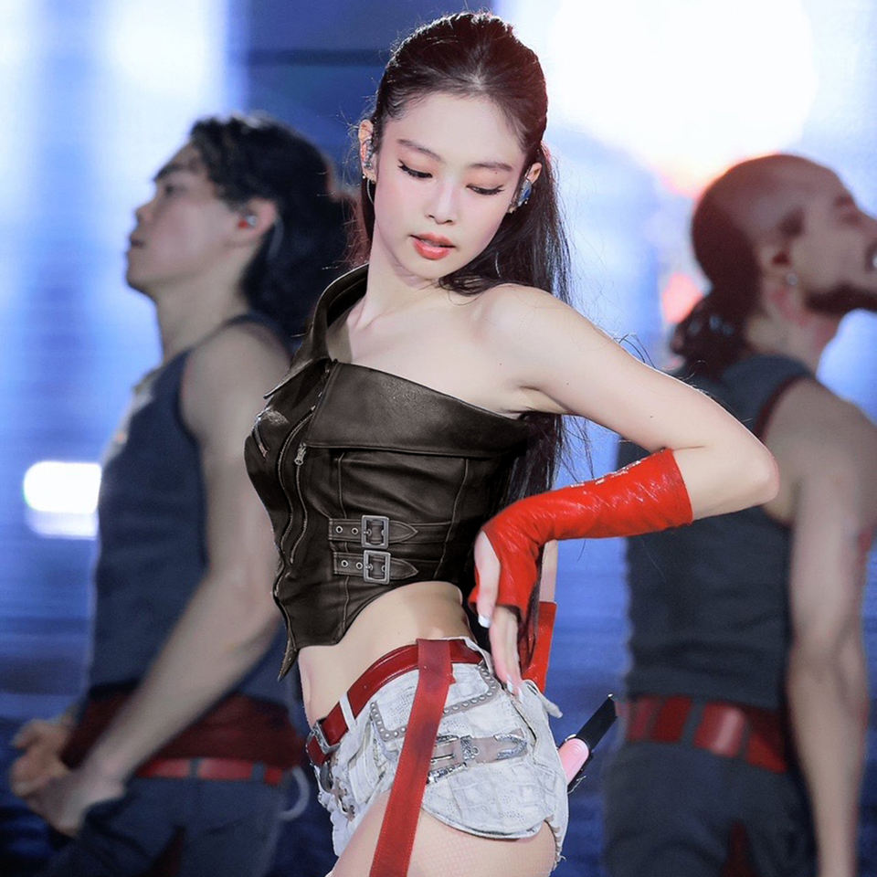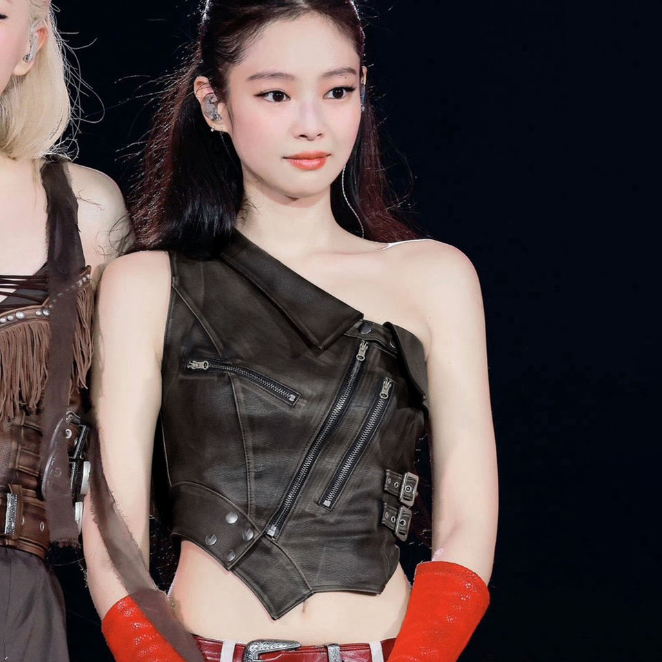 เสื้อครอปหนังซิปเฉียงผู้หญิง ทรงเข้ารูป ไหล่เดียว สไตล์สตรีท เซ็กซี่ แฟชั่นไบค์เกอร์