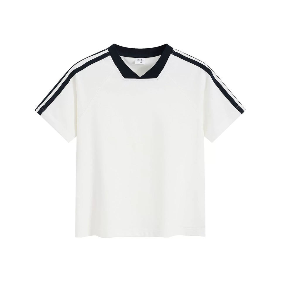 เสื้อคอวีแนวสปอร์ตสำหรับผู้หญิงเสื้อลายขวางน้ำหนักเบาระบายอากาศได้ดี260gsm
