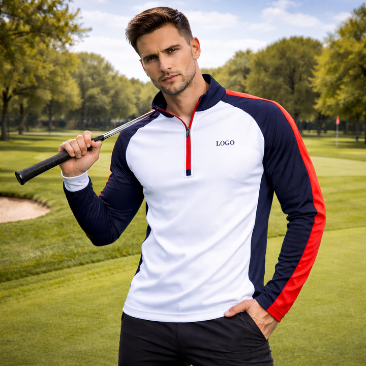 เสื้อกีฬาถักนิตติ้งผู้ชาย น้ำหนักเบา ทรงเข้ารูป ระบายอากาศได้ดี คุณภาพพรีเมียม สำหรับกอล์ฟ แบบซิปสี่ส่วน สกรีนโลโก้ได้