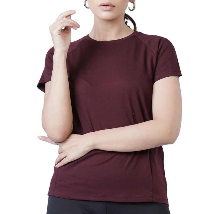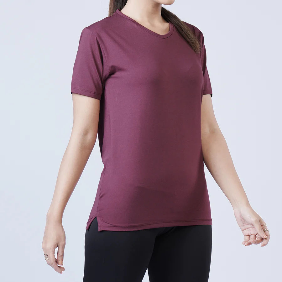 เสื้อยืดแขนสั้นสำหรับผู้หญิง,เสื้อยืดเบอร์กันดีว่างเปล่าโพลีเอสเตอร์100% ผ้าไมโครไฟเบอร์แห้งเร็วสีพื้นใส่วิ่งใส่สบาย
