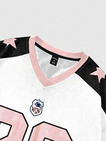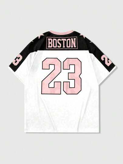 เสื้อเจอร์ซีย์อเมริกันฟุตบอลคอวีผ้าตาข่ายทรงโอเวอร์ไซส์สำหรับผู้ชาย เสื้อกีฬาโพลีเอสเตอร์ลายดาวที่ไหล่ สไตล์สตรีทแวร์ หมายเลขด้านหน้า รับผลิตแบบ OEM