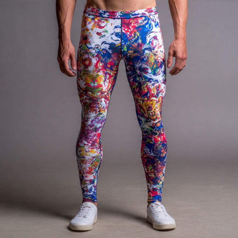 กางเกงเลกกิ้งออกกำลังกายแบบซับลิเมชั่นสำหรับผู้ชาย กางเกงออกกำลังกายแบบรัดรูปพิมพ์ลาย กางเกงฟิตเนสสำหรับผู้ชาย กางเกงเลกกิ้งซับลิเมชั่น