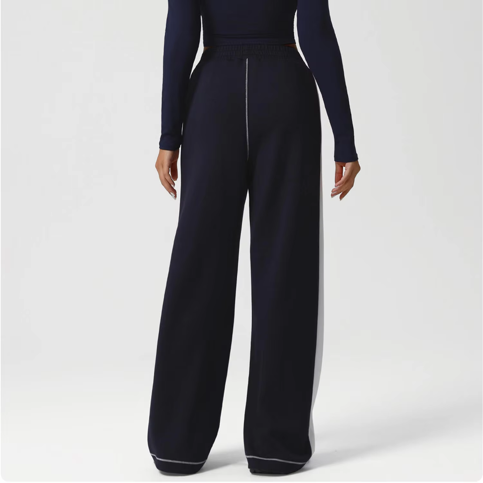 กางเกงโยคะทรงกีฬาพร้อมดีไซน์เชือกรูด ขากว้างสีทึบและมีกระเป๋าข้าง