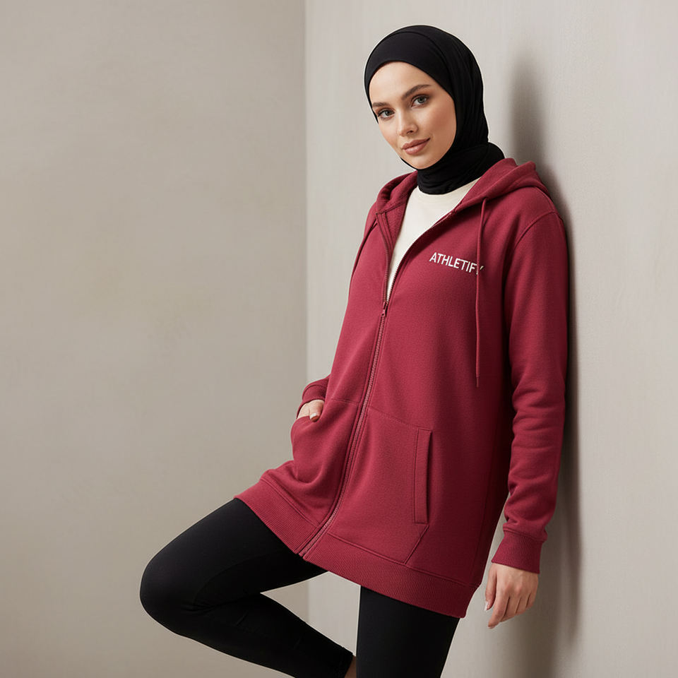 เสื้อฮู้ดมีซิปยาวสไตล์มุสลิมสำหรับผู้หญิง