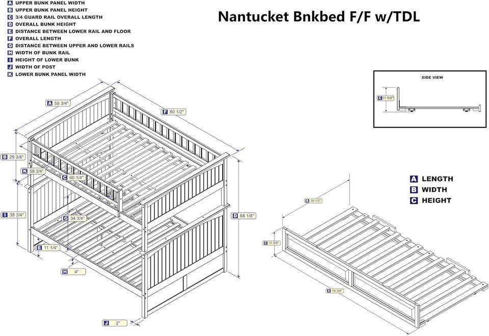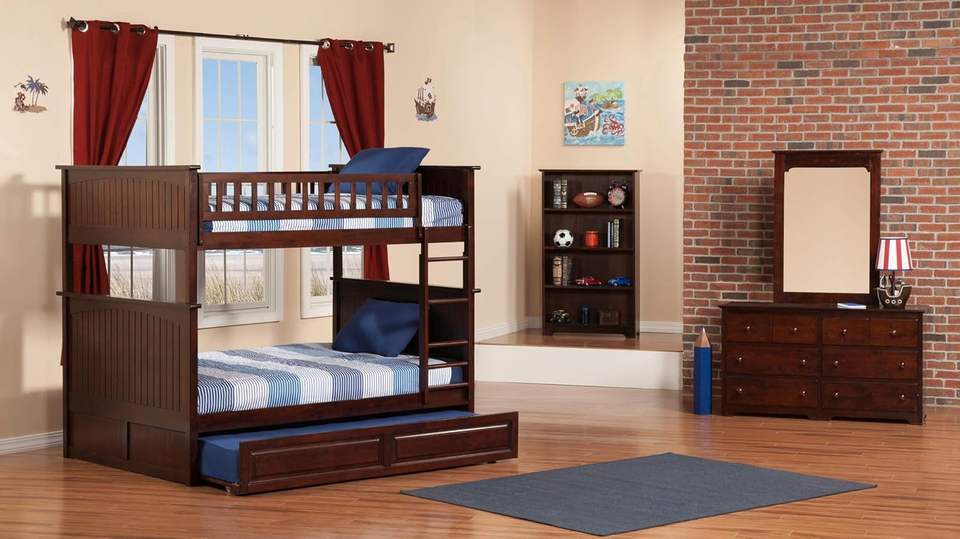 แนนทักเก็ตเฟอร์นิเจอร์แอตแลนติกเตียงไม้เต็มเตียงสองชั้นพร้อมแผงยกวอลนัทโบราณ