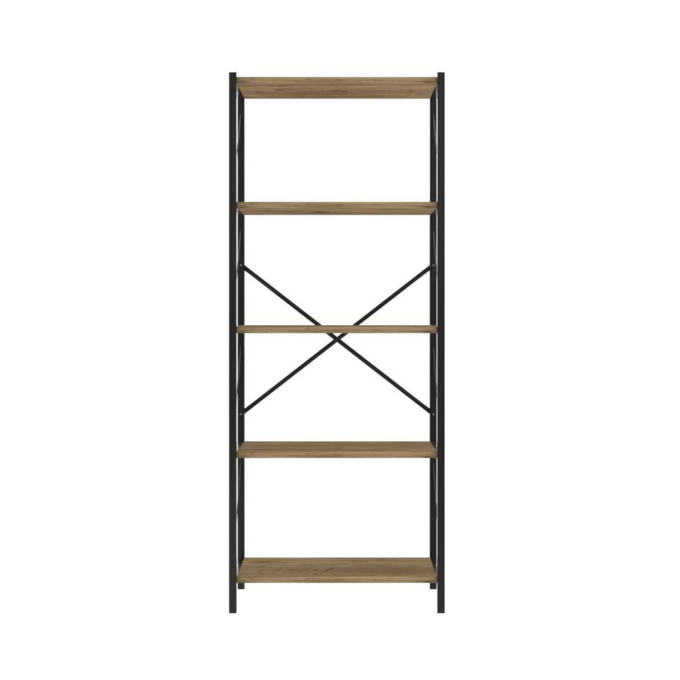 ตู้หนังสือโลหะตกแต่งด้วยไม้สน5ชั้นสไตล์โมเดิร์นขนาด150x60x30ซม. สีวอลนัท