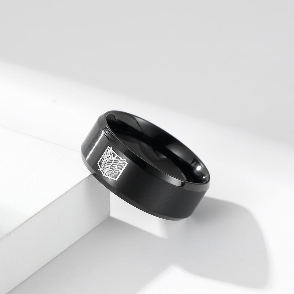 แหวนไทเทเนียมลาย Attack On Titan Wings Of Liberty ขนาด 8 มม. เครื่องประดับสำหรับทุกเพศ เหมาะสำหรับคอสเพลย์ อนิเมะ ของขวัญงานคอนเวนชั่น