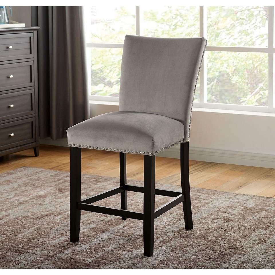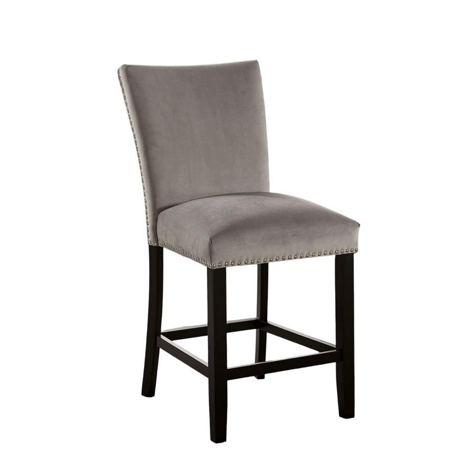 Attractive 2-Piece Counter Height Dining Chairs Gray Flannelette Seat with Nailhead Trim for Kitchen Breakfast Room Furniture