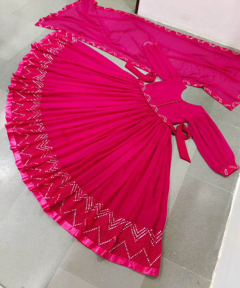 ชุดปาร์ตี้ผ้าไหมผ้าฝ้ายแบบเย็บกึ่งเย็บสำหรับผู้หญิงอินเดียชุดเสื้อผ้าพื้นเมือง