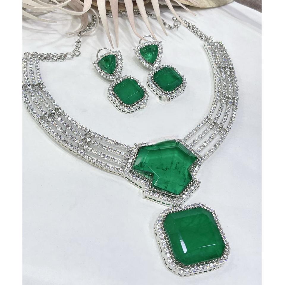 ชุดสร้อยคอพร้อมต่างหูดีไซน์เนอร์สำหรับผู้หญิง คุณภาพเยี่ยม สวยงาม ประดับด้วยเพทายเคลือบเงิน คอลเลคชั่นสำหรับงานแต่งงาน