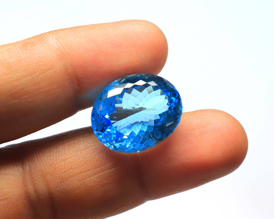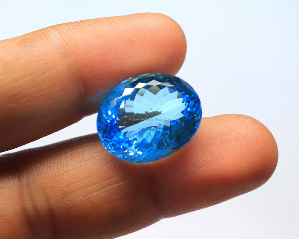 หินพลอยบุษราคัมสีฟ้าทรงวงรีขนาดใหญ่พลอยเจียระไนแบบสวิสสีฟ้า
