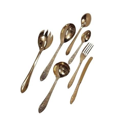 เครื่องใช้บนโต๊ะอาหารทองเหลืองตกแต่งที่น่าดึงดูดใจชุดมีดช้อนและส้อมทอง