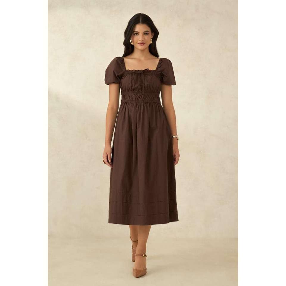 เดรสยาวคลุมเข่าผ้าเรยอนสำหรับผู้หญิงชุดเดรสยาวใส่ไปทะเลคอกลมแขนสั้นลำลองสำหรับวันหยุดฤดูร้อนสีเบอร์กันดี
