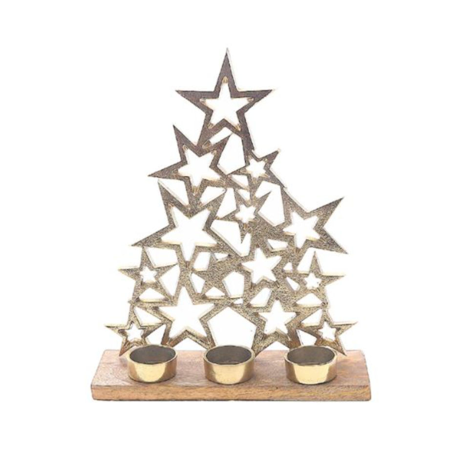 เชิงเทียนโลหะอะลูมิเนียมพร้อมฐานไม้สำหรับตกแต่งบ้านเชิงเทียนดีไซน์รูปดาวสำหรับเทศกาลคริสต์มาสที่น่าสนใจ