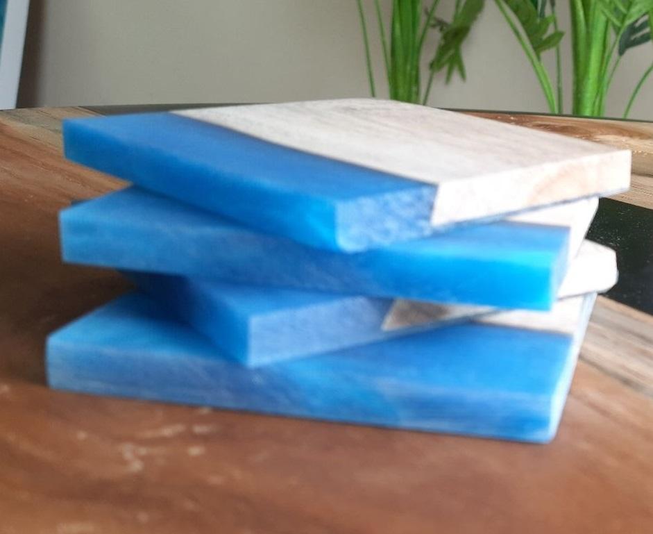 Handcrafted Wooden & Resin Drink Coaster Set Attractive Colored Fresh Wooden Tea Cup Mats Pads 4 Piece Tableware
