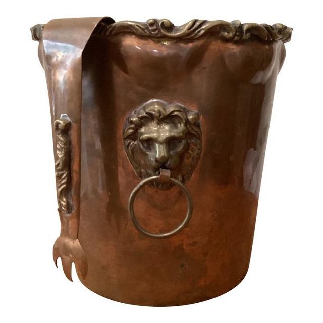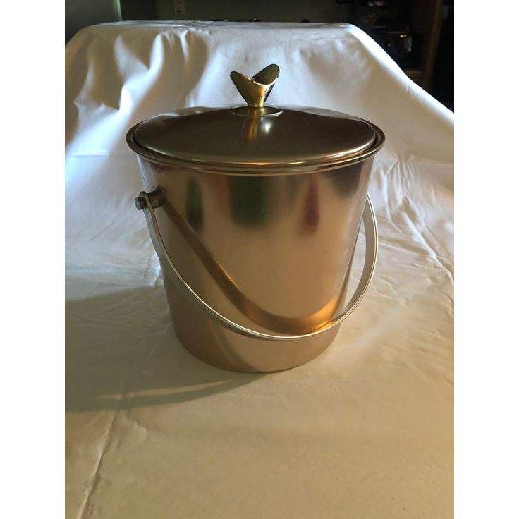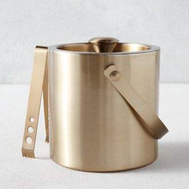 ถังน้ำแข็งอลูมิเนียมพร้อมด้ามจับทำจากทองเหลืองถังใส่น้ำแข็งทรงกลมสีทองแดงดีไซน์สวย