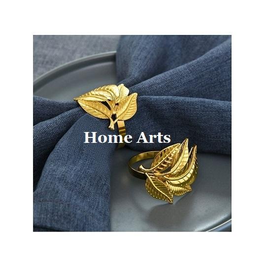 ชุดแหวนกระดาษเช็ดปากอลูมิเนียมวงแหวนกระดาษทิชชูสองขนาดออกแบบลายใบไม้