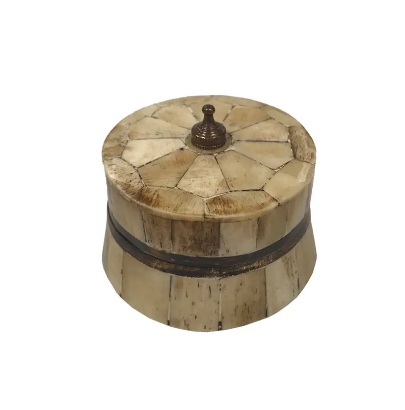 กล่องเครื่องประดับทรงกลมแบบฝังกระดูกดีไซน์งานฝีมืออินเดียเป็นมิตรกับสิ่งแวดล้อมสำหรับจัดเก็บและจัดแสดง