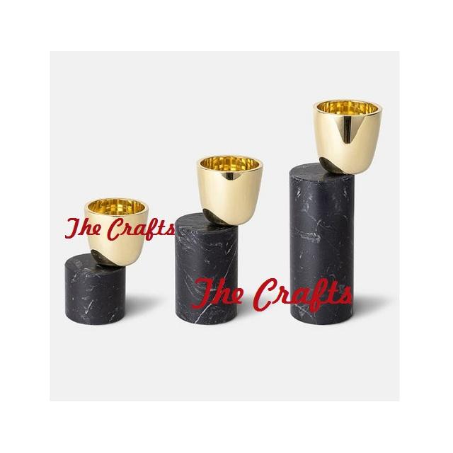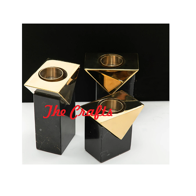 ชุดเชิงเทียนสามชิ้นที่วางเทียนหินอ่อนและโลหะสำหรับใช้ในงานแต่งงานงานอีเวนต์บนโต๊ะ